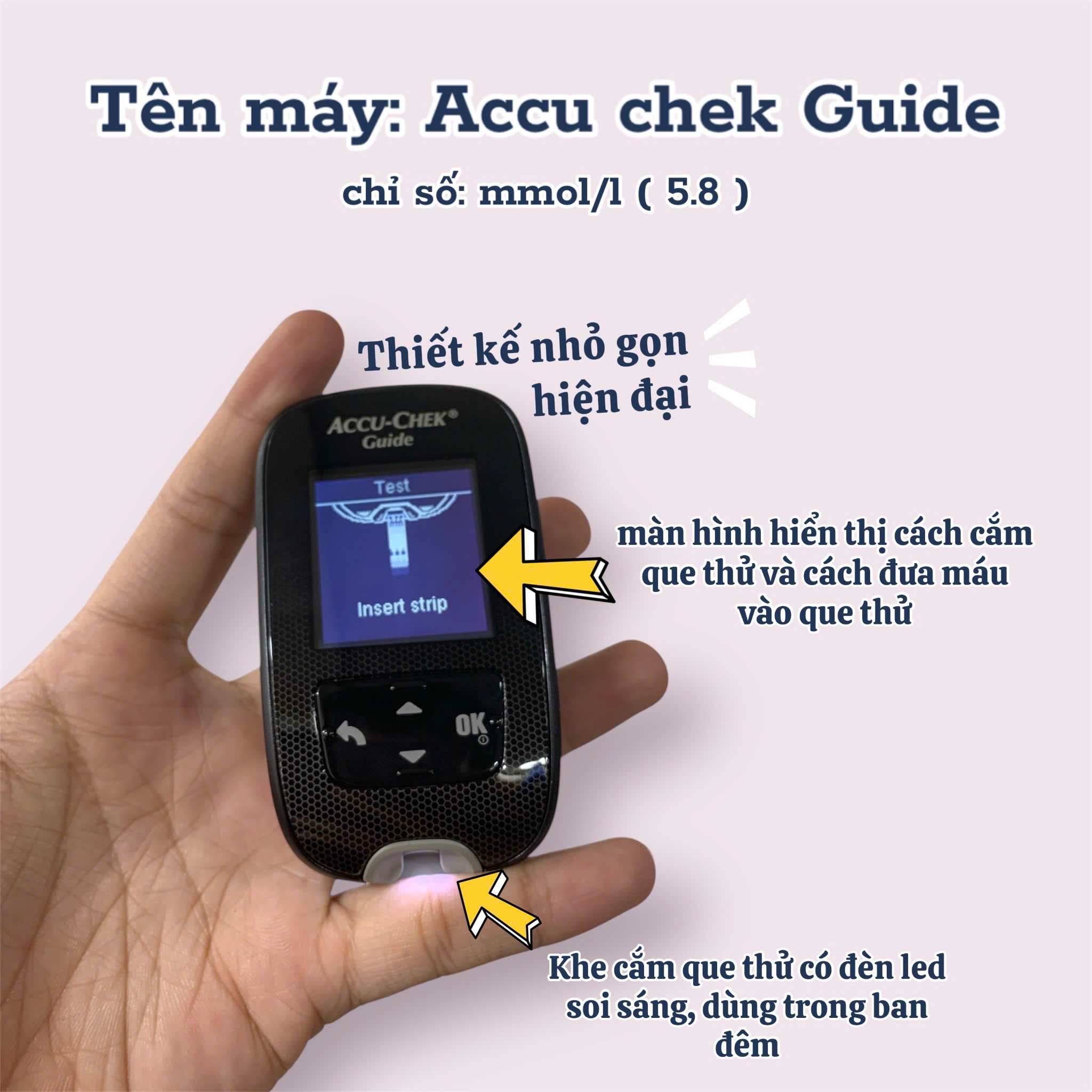 - Máy đo đương huyết Accu-Chek Guide mang đến một giải pháp thông minh vượt trội giúp việc kiểm tra đường huyết trở nên dễ dàng hơn.